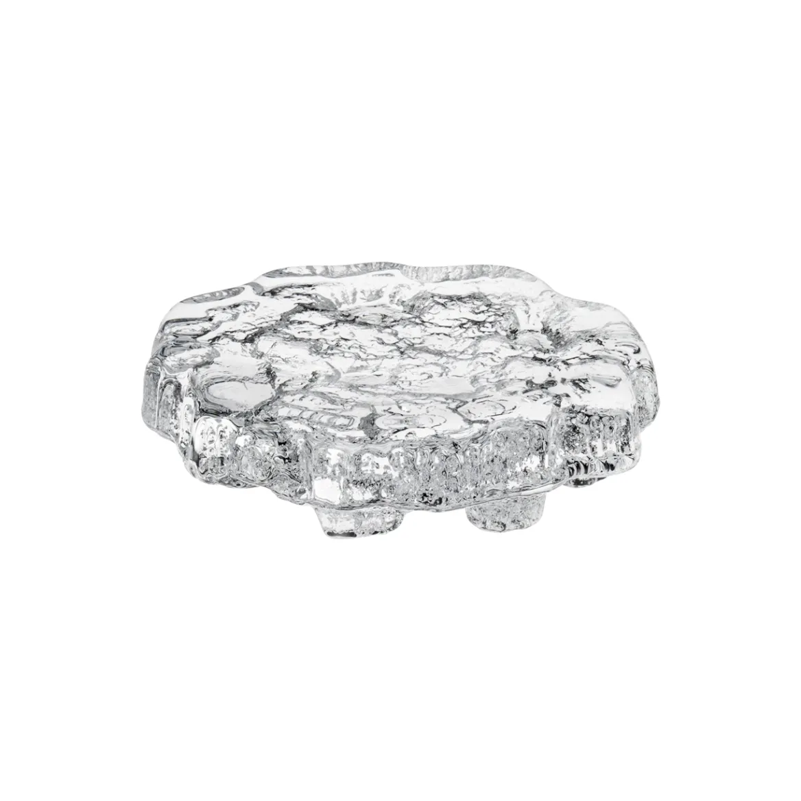 Tämä upea jäälautta on käsintehty valamalla sula lasi muottiin, jota pyöritetään, jolloin lasimassa leviää ja muotoutuu esineen muotoiseksi. Käytetyt muotit ovat alkuperäiset, Tapio Wirkkalan itse käsityönä valmistamat. Jokainen jäälautta on signeerattu suunnittelijan nimikirjaimilla ja valmistusvuodella. Huomioithan, että jäälautta ei sovellu kynttilöiden alustaksi.
