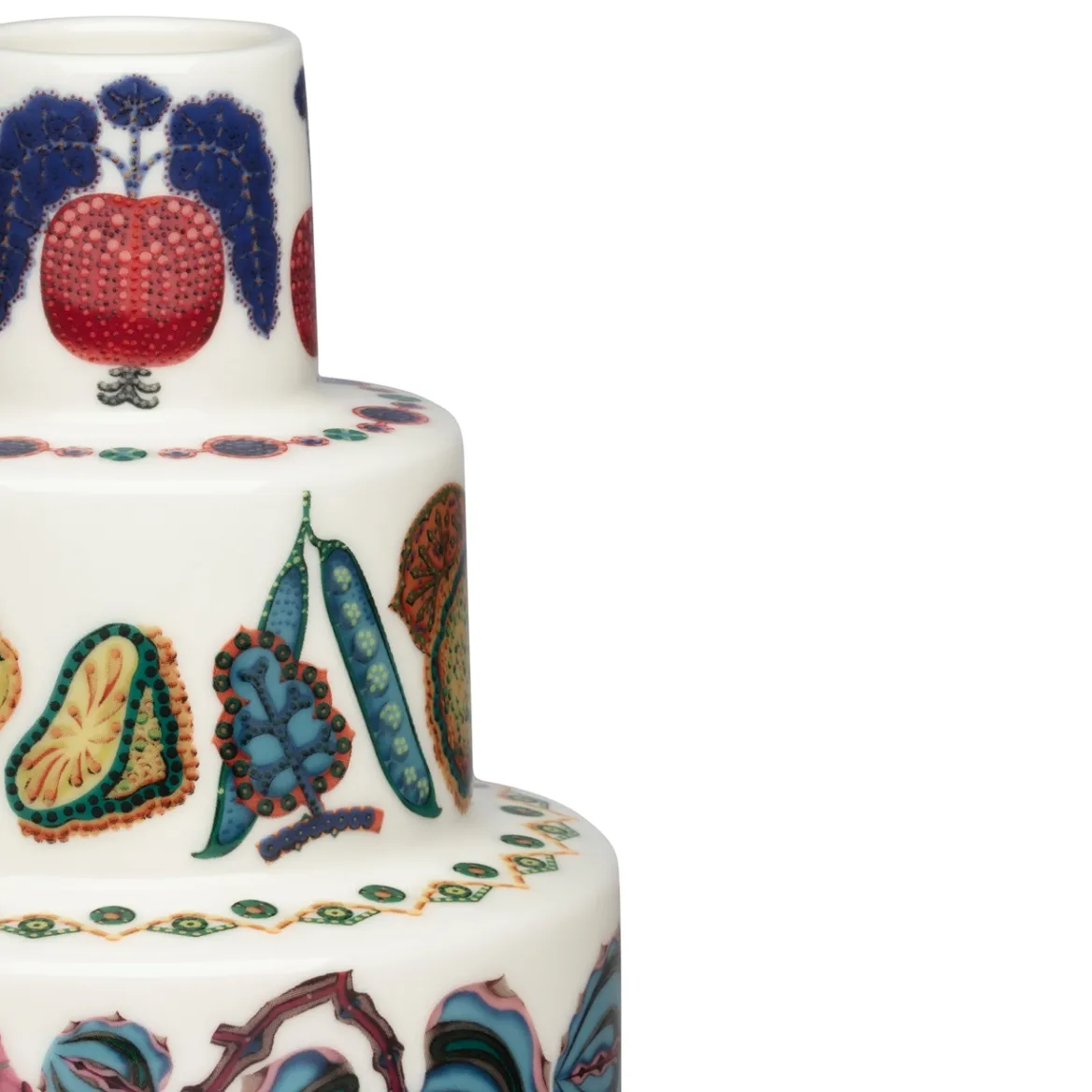 Klaus Haapaniemen suunnittelema keraaminen Taika Sato -maljakko on kuin taideteos, joka täydentää kodin sisustusta ainutlaatuisella tyylillä. Maalaustaiteen asetelmista ammentavat lumoavat vihannekset ja hedelmät korostavat maljakon veistoksellista muotoa entisestään. Keraaminen maljakko sopii täydellisesti niin kukille kuin oksille ja on kaunis esine myös sellaisenaan. Taika Sato -maljakko kerää katseet huoneessa kuin huoneessa. Taika Sato -maljakko on myös loistava lahjaidea. Se on täydellinen valinta jokaiselle, joka arvostaa taidetta ja kauniita esineitä.