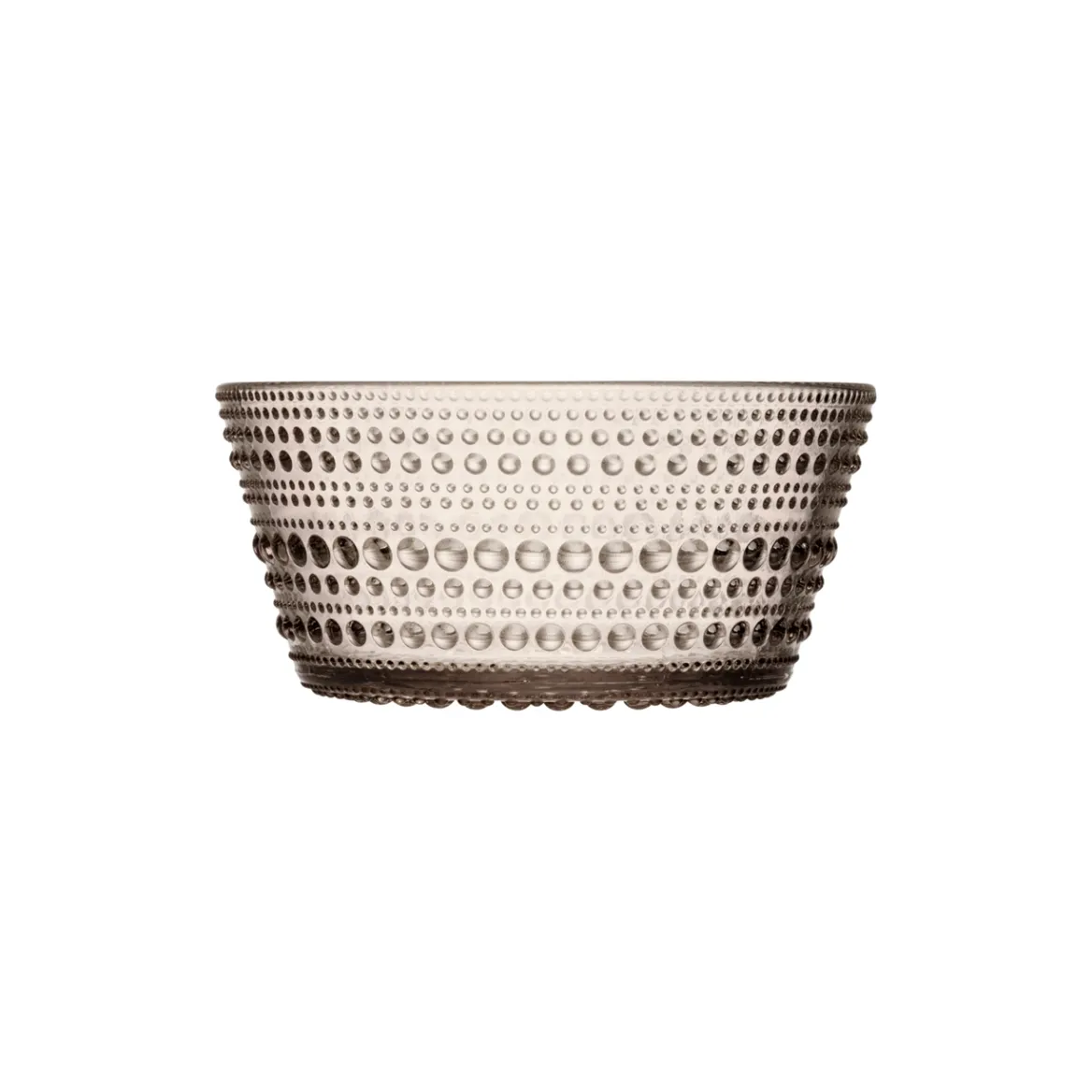 Muotoilija Oiva Toikka halusi peittää puristelasiin jäävät saumakohdat. Kokeilujen tuloksena syntynyt pintastruktuuri antaa Kastehelmi-sarjalle sen ainutlaatuisen ulkonäön. Luonnon inspiroiman Kastehelmi-sarjan pinnalla loistavat lasihelmirivit muistuttavat aamuauringossa kimaltavia kastepisaroita. Kastehelmi-lasiastioiden pintarakenne tuo kauniisti esiin lasin pinnasta taittuvat valonsäteet. Rakastettuun Iittalan Kastehelmi-sarjaan kuuluu erikokoisia käytännöllisiä, toimivia ja koristeellisia astioita. Herkän kaunis Kastehelmi-kulho kestää arjen käyttöä: se sopii tarjoilukulhoksi aamupalalle, naposteltaville tai makeisille. Uusi tyylikäs pellavan sävy sopii kaikkiin kattauksiin. Kerää yksittäisistä osista kokonainen sarja. Hieno lahjaidea.