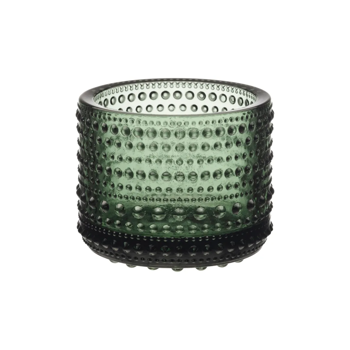 Valoa pimeneviin iltoihin, tunnelmaa erityisiin hetkiin tai kiinnostava yksityiskohta sisustukseen. Oiva Toikan suunnitteleman Kastehelmi kynttilälyhdyn eläväinen lasihelmipinta heijastaa valoa kauniisti. Havunvihreän syvä sävy antaa raikkaan ja persoonallisen säväyksen tuttuun muotoon. Erivärisiä kynttilälyhtyjä yhdistelemällä voit luoda personallisen tunnelman. Havunvihreä Kastehelmi-kynttilälyhty sopii erinomaisesti lahjaksi kaikille tunnelmointia rakastaville. Kastehelmi-sarjan tuotteet valmistetaan Iittalan lasitehtaalla Suomessa