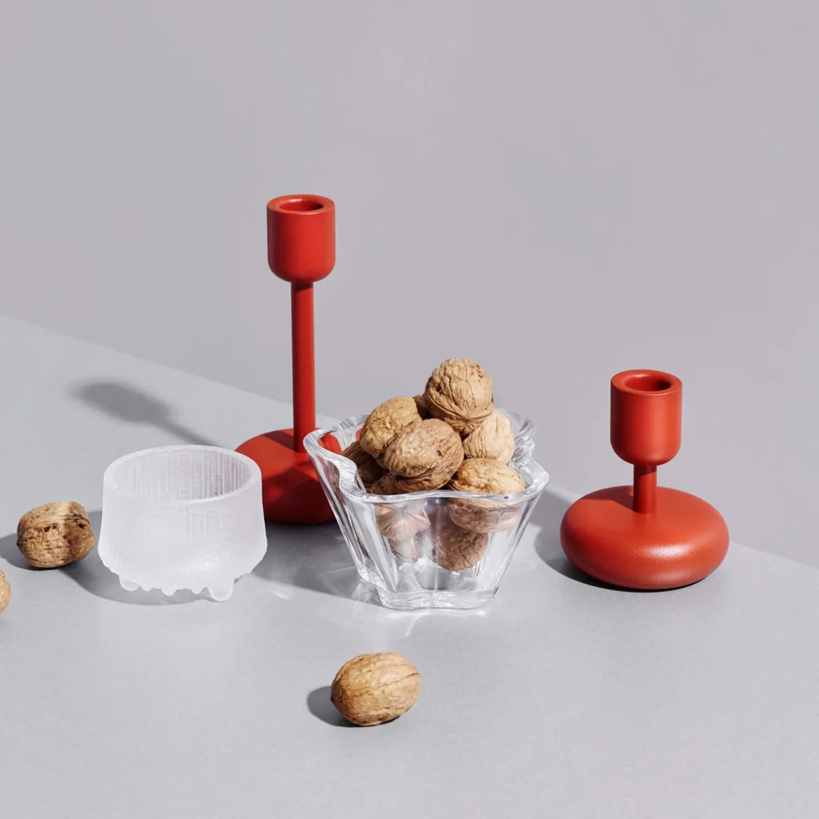 Muotoilija, taiteilija Tapio Wirkkalalle Suomen luonnolla oli erityinen merkitys. Wirkkala uudisti lasinpuhalluksen perinnettä klassisella Ultima Thule -sarjallaan. Wirkkala käytti Iittalan lasitehtaan lasinpuhaltajien kanssa lähes tuhat työtuntia kehittäessään uutta lasinvalmistustekniikkaa. Näin saatiin aikaan lasia, jonka pintarakenne jäljittelee muotoilijaa inspiroinutta sulavan jään ja lumen pintaa. Ultima Thule -lasistossa on pyöristetty pohja, ja lasin kolme jalkaa näyttävät sulavalta jäältä. Ultima Thule tuo sisustukseen sävyjä arktisesta luonnosta. Ultima Thule -kynttilälyhdyn matta huurrelasi säteilee huoneeseen lämmintä valoa ja kodikasta tunnelmaa. Näyttävä sisustusesine yksinään tai ryhmänä. Täydellinen lahja.