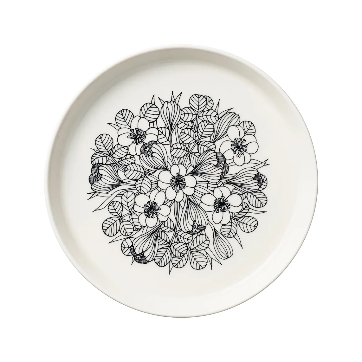 Arabian rakastetut kuviot -sarjan Krokus-lautanen on kuviosuunnittelija Esteri Tomulan tunnistettavaa tyyliä. 1970-luvun lopulta tuttu kuvio koristaa nyt tämän päivän astiamuotoja. Tomulan mustalla kukkakoristeella kuvioitu lautanen 19cm sopii aamiaiselle, alku- ja välipaloille sekä tarjoiluun. Kerää Arabia Krokus-astioista kaunis kokonaisuus. Konepesun kestävä.