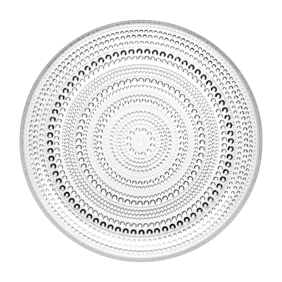Muotoilija Oiva Toikka halusi peittää puristelasiin jäävät saumakohdat. Muotoilukokeilujen tuloksena syntyi uudenlainen pisarakoristeluun perustuva pintarakenne, joka antaa Kastehelmi-sarjalle sen ainutlaatuisen ulkonäön. Pinnalla välkkyvät lasihelmirivit muistuttavat aamuauringossa kimaltavia kastepisaroita. Lasipisarat heijastavat kauniisti valoa Kastehelmi-lasiastioiden pintarakenteessa. Rakastettuun Iittalan Kastehelmi-sarjaan kuuluu erikokoisia käytännöllisiä, toimivia ja koristeellisia astioita. Herkän kaunis ja kestävä 248 mm:n Kastehelmi-lautanen soveltuu kattaukseen alkupalojen, tapasten tai jälkiruokien tarjoiluastiaksi. Kirkas lasi korostaa annoksen esillepanoa kauniisti. Selkeän tyylikäs muoto on näyttävä osa kattausta. Kerää yksittäisistä osista kulhosarja. Upea syntymäpäivälahja, häälahja tai tuparilahja. Konepesun kestävä.