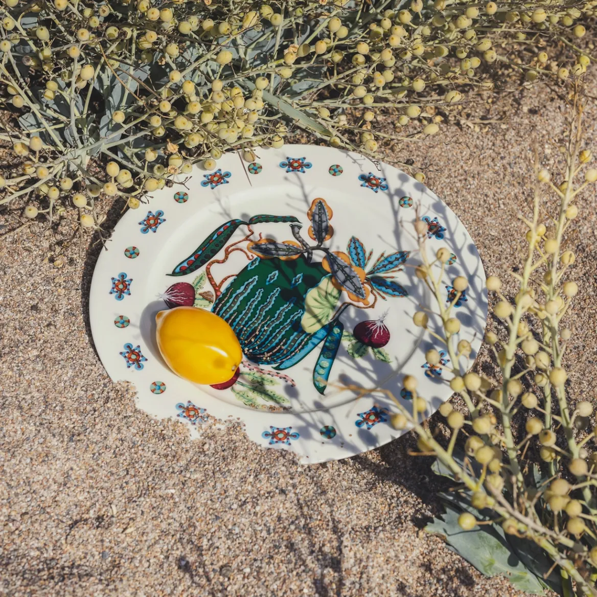 Taika Sato on kiinnostava yhdistelmä Klaus Haapaniemen taidetta ja Heikki Orvolan selkeää, funktionaalista muotoilua. Haapaniemen leikkisät hedelmä- ja vihannesasetelmat ammentavat inspiraatiota maalaustaiteesta ja toimivat kattauksen keskipisteenä. Lautasten visuaalinen ilottelu suorastaan kutsuu pitämään intiimejä illallisia, rentoja kokoontumisia sekä rauhassa vietettyjä iltoja. 27cm lautanen sopii reilun kokonsa puolesta ruokalautaseksi sekä tarjoiluvadiksi. Kata siis pöytää kaikki suosikki ruokasi ja anna Taika Sadon olla tyylisi jatke.