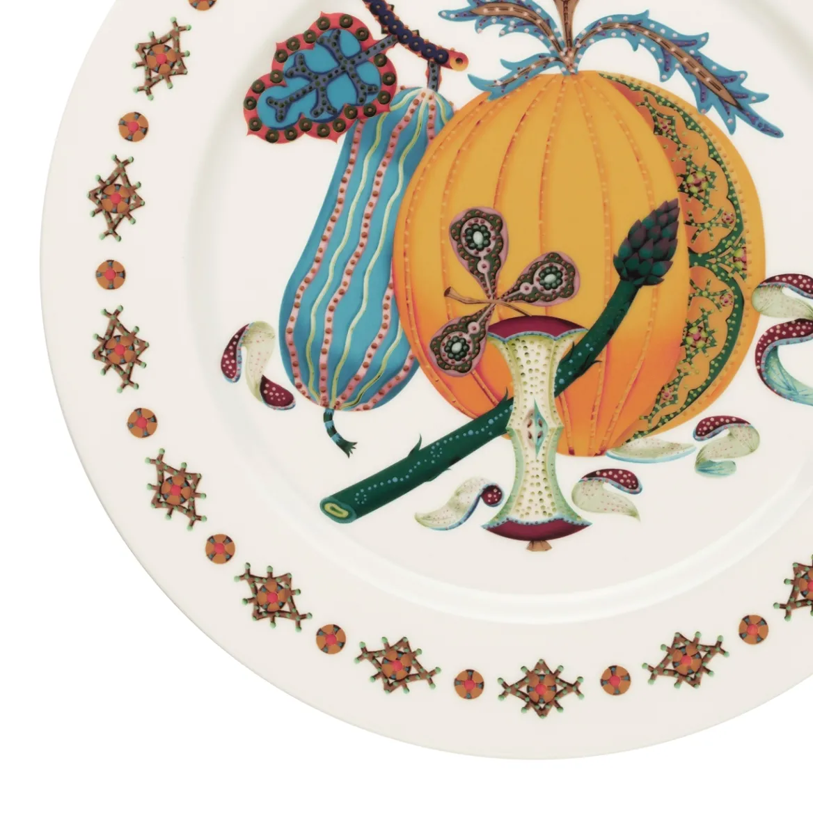 Taika Sato -lautanen on taatusti monipuolinen valinta. Suuren kokonsa ansiosta on käytössäsi niin lautanen pääruoalle kuin tarjoiluun. Klaus Haapaniemen ja Heikki Orvolan suunnittelema Taika Sato yhdistää eloisat kuvitukset pelkistettyyn muotokieleen. Asetelmataiteesta ammentava kuvitus on täydellinen tausta ruualle ja tekee ruokailusta hieman maagisempaa. Voit helposti luoda runsaan ja leikkisän kattauksen yhdistelemällä Taika-sarjan osia yhteen tai tuoda kiinnostavan yksityiskohdan pöytään yhdistämällä lautasen pelkistetympiin astioihin.