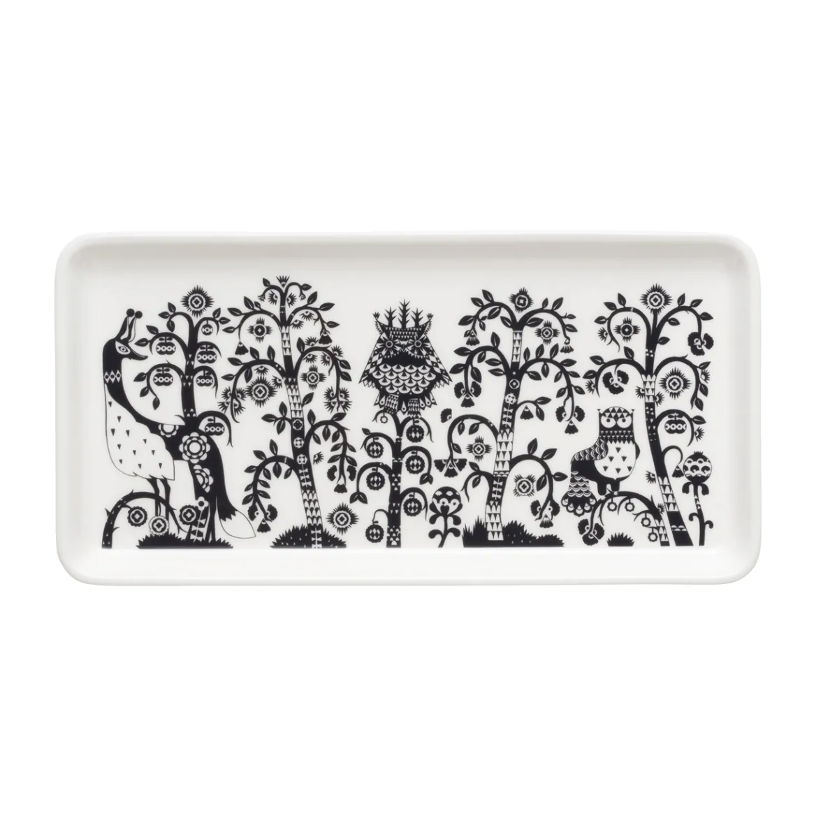 Suorakulmainen 12×24 cm Taika-lautanen sopii tarjoiluun ja toimii kauniina koristeena itsessään. Lautasessa yhdistyvät Klaus Haapaniemen kiehtova taide ja Heikki Orvolan minimalistiset muodot. Monikäyttöinen lautanen on myös kaunis koriste-esine, joka pitää pienet aarteet kauniisti esillä.