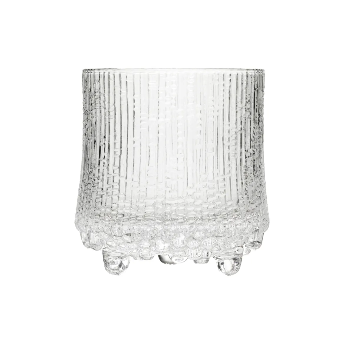 Tapio Wirkkalan muotoilemat maailmankuulut lasiesineet syntyivät Suomen karun kauniin luonnon innoittamina. Wirkkala käytti Iittalan lasitehtaan lasinpuhaltajien kanssa lähes tuhat työtuntia kehittäessään uutta lasinvalmistustekniikkaa. Näin syntyi Ultima Thule, joka keskiaikaisen käsityksen mukaan tarkoittaa tunnetun maailman laidalla olevaa jään peittämää saarta, jossa aurinko ei koskaan laske. Ultima Thule -klassikkolasistossa on pyöristetty pohja, ja lasin kolme jalkaa näyttävät sulavalta jäältä. Lasisto tuo sisustukseen arktisen luonnon sävyjä. Suomalaisessa lasistossa yhdistyy taidelasin vaativa valmistustekniikka funktionaalisuuteen. Lasistosta tuli kansainvälinen klassikko, kun Finnair alkoi käyttää laseja ensimmäisessä luokassa. Ultima Thule On the Rocks -lasi sopii drinkkien, cocktailien, veden ja mehun tarjoiluun.