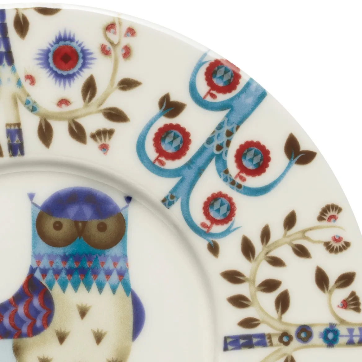 Kun Heikki Orvolan muotoilu yhdistyy Klaus Haapaniemen taiteeseen, syntyy jokaisen kattauksen katseenvangitsija. Hienostunut valkoinen tausta korostaa värikkään pöllökuvion rikkaita yksityiskohtia. Luo helposti oma tyylisi yhdistelemällä Taika-malliston eri osia ja värejä.