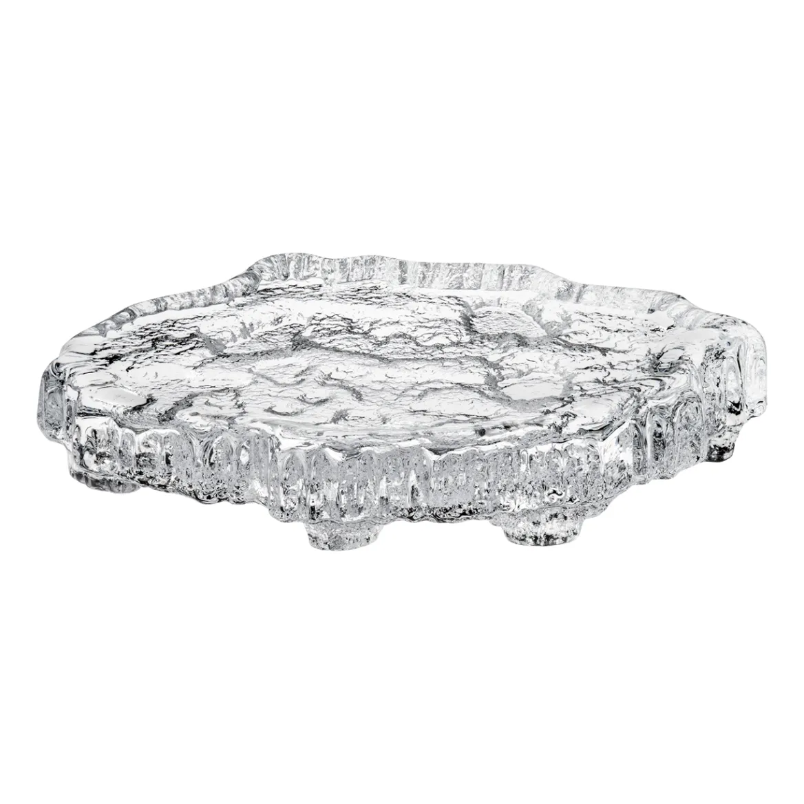 Lasinen jäälautta on kuin pala sulavaa jäätä kellumassa vedessä. Tapio Wirkkalan vuonna 1976 suunnittelema jäälautta on täydellinen katseenvangitsija sekä sisustukseen että tarjoiluun. Tämä isompi jäälautta sopii erityisen hyvin ikimuistoisen illallisen loihtimiseen ja käyttää sitä esimerkiksi sushin tai käsintehtyjen suklaiden tarjoiluun. Se on myös erinomainen valinta korujen esillepanoon tai suosikkihajuvesiesi esittelyyn kylpyhuoneessa.