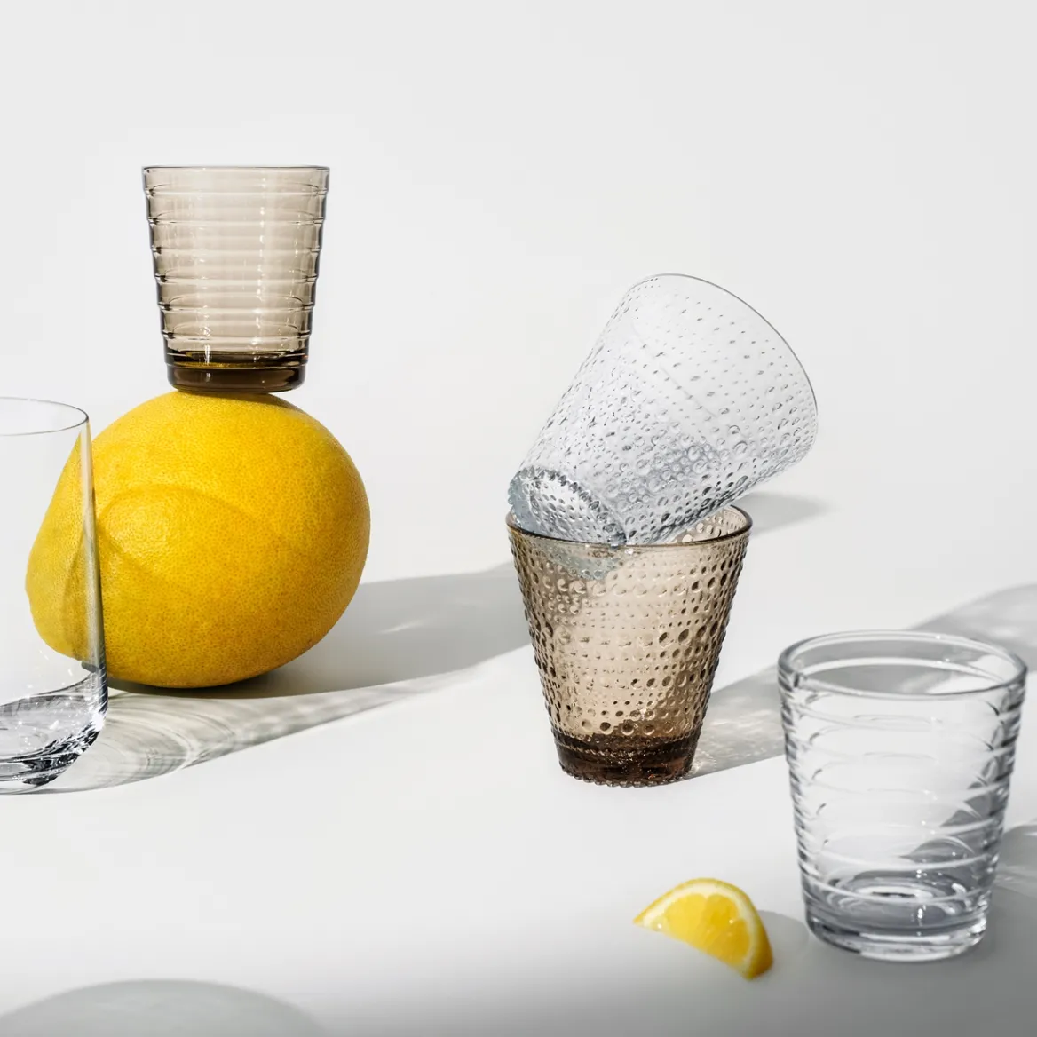 Kastehelmi-sarjan ainutlaatuinen pisaramainen pintarakenne syntyi muotoilija Oiva Toikan halutessa peittää puristelasiin jäävät saumakohdat. Kastehelmi-sarjan pintastruktuurin sädehtivät lasihelmirivit muistuttavat aamuauringossa kimaltavaa kastetta. Rakastettuun Kastehelmi-sarjaan kuuluu erikokoisia käytännöllisiä ja koristeellisia lasiastioita. Yksilöllisten ja monikäyttöisten lasiastioiden pintarakenteen lasipisarat heijastavat kauniisti valoa. Kastehelmi-juomalasi on suomalaisen lasimuotoilun klassikko. Herkän kaunis ja kestävä juomalasi sopii tyylikkäästi kattaukseen. Uusi raikas pellavan sävy on modernin tyylikäs. Saatavana monia luonnon inspiroimia värejä. Konepesun kestävä.