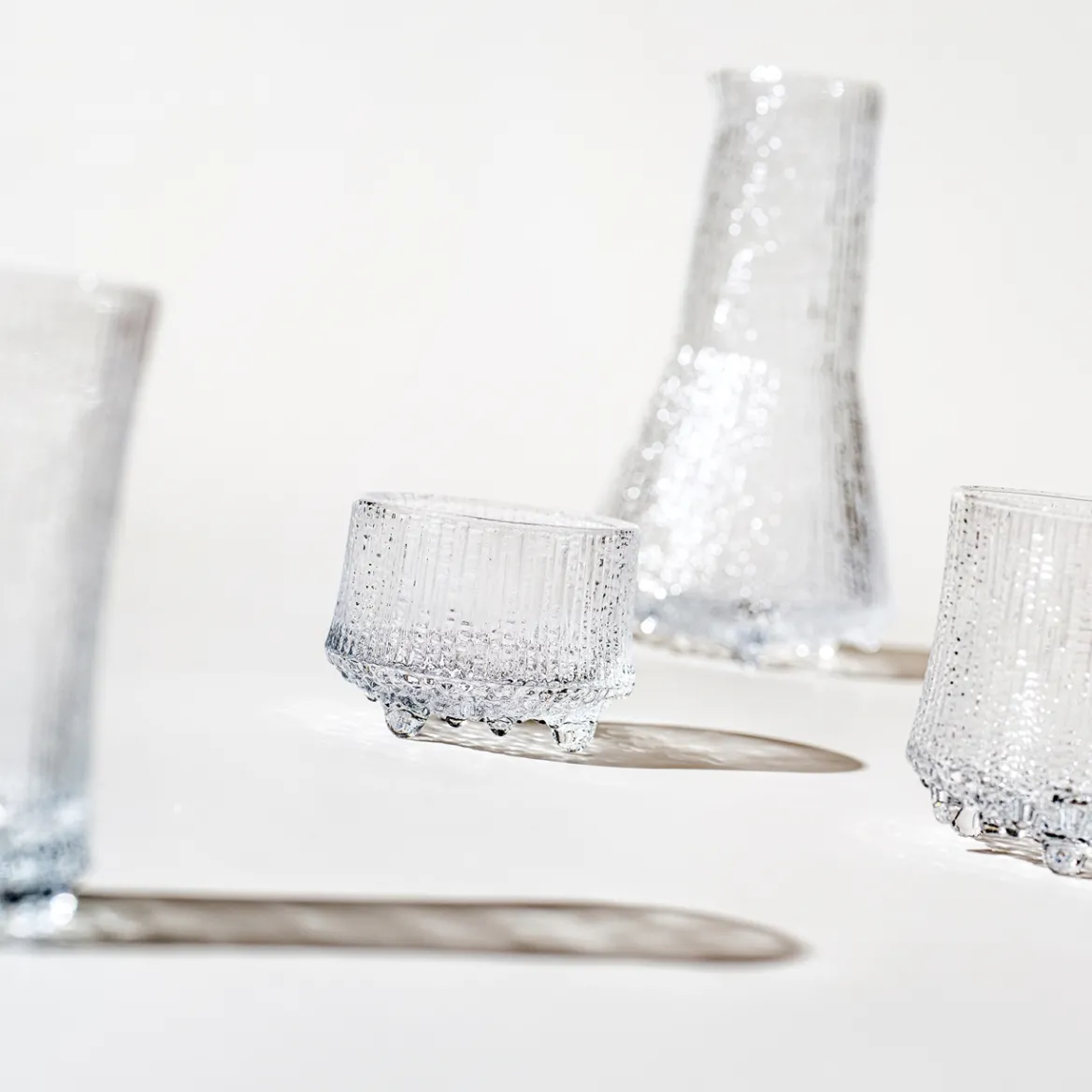 Pohjolan talven ja jään innoittama Ultima Thule on yksi suomalaisen lasimuotoilun ikoneista. Sen orgaaninen pintakuvio tunnistetaan ympäri maailmaa muotoilijamestari Tapio Wirkkalan erehtymättömäksi kädenjäljeksi. Lasi saa elävän pintansa tekniikalla, jossa sula lasimassa hakee muotonsa kaiverretuissa muoteissa.