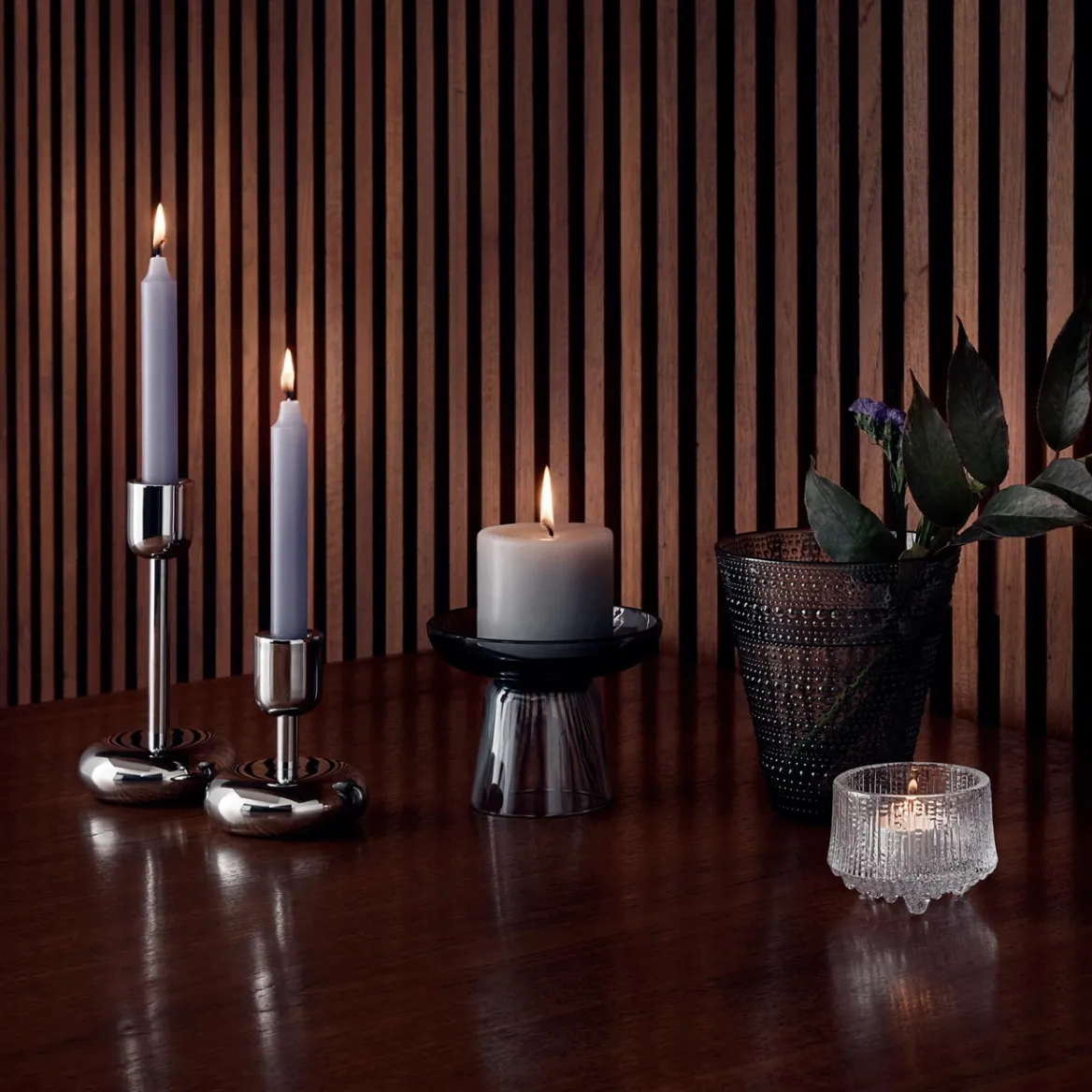 Erikoisenmuotoinen pöytä ja pöydänjalat inspiroivat muotoilija Matti Klenelliä hänen luodessaan Nappula-kynttiläjalat. Piirteet toivat Klenellin mieleen Oiva Toikan ja Kaj Franckin muotoilun ja inspiroivat häntä suunnittelemaan Nappulalle tunnusomaisen muodon. Kynttilänjalan tyylikkään kapean jalan ja pyöreämuotoisen pohjan kontrastissa yhdistyy hienosti Klenellin rakkaus moderniin muotoiluun ja vintageen. Kiiltävä ruostumaton teräs korostaa selkeää ja minimalistista modernia muotoa . Pehmeänä kajastava kuulas valo luo sisustukseen lämpimän tunnelman. Nappula-kynttilänjalka on pohjoismaisen muotoilun moderni klassikko, joka on kaunis yksinään tai ryhmäksi koottuna. Hieno syntymäpäivä-, hää- tai tuparilahja. Sopii antiikki- ja pallokynttilöille.