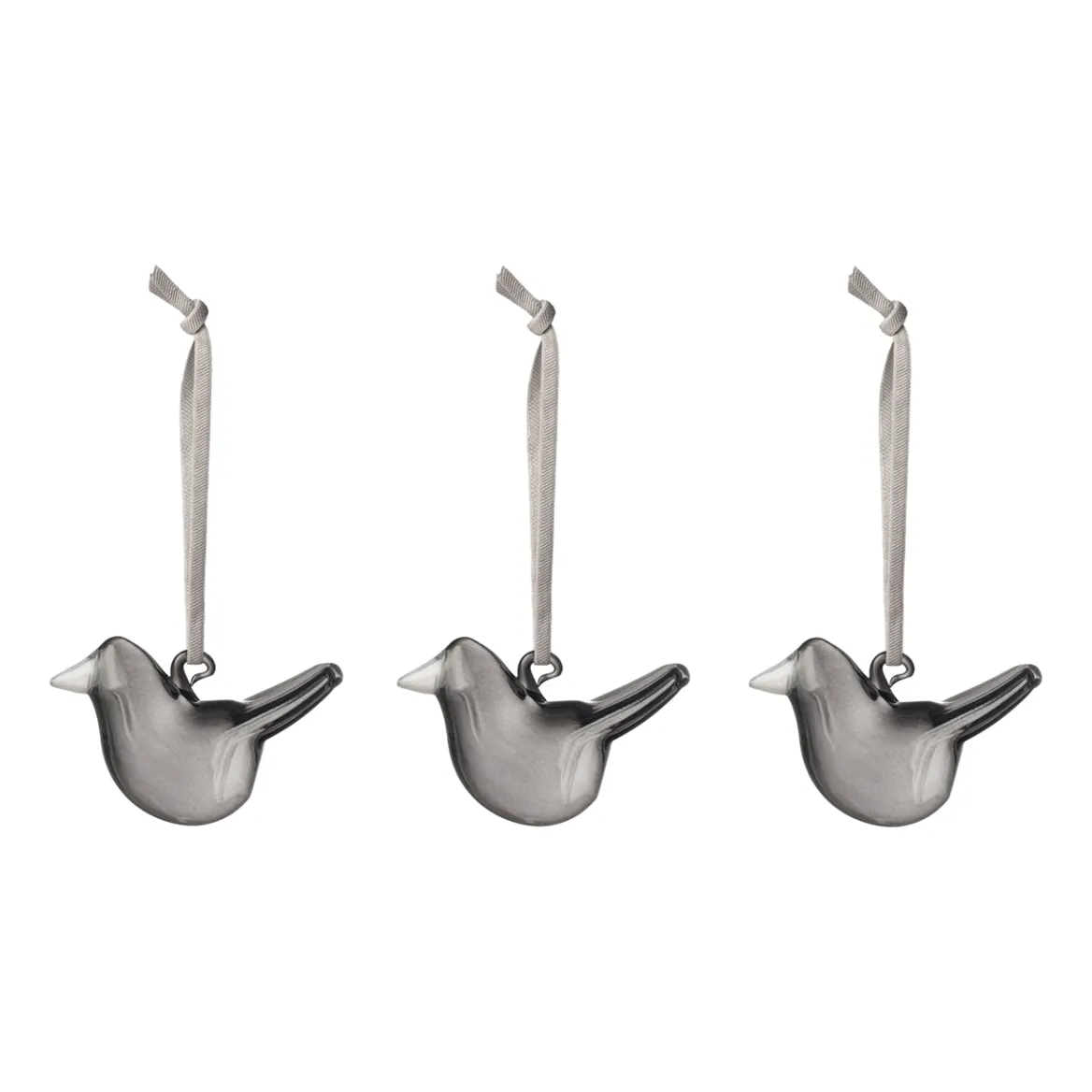 Oiva Toikan Sieppo-linnuista inspiraationsa saaneet minilinnut tuovat raikkautta ja iloa jokaiseen kotiin. Harmaa lasi taittaa valon säteet upeasti ja linnun pinta heijastaa valon leikkisästi ympärilleen. Kukin lintu on pieni taideteos. Jokaisessa minilinnussa on kaunis harmaa tekstiilinauha, joka mahdollistaa niiden ripustamisen. Ripusta linnut ikkunaan, huonekasvien seuraksi tai vaikka maljakossa oleviin oksiin.