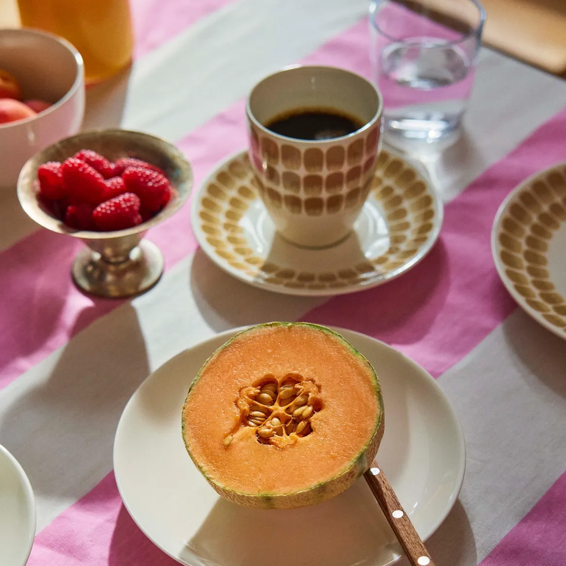 Heikki Orvolan 24h-sarja on saanut uuden ilmeen muotoilutoimisto Helorinne ja Kallion suunnitteleman Tuokio-kuvion myötä. Astioiden käsinmaalattu vaikutelma yhdistettynä moderniin kuvioon sopii nykypäivän monimuotoisiin kattauksiin ja upeasti yhteen esim. 24h astioiden, Paratiisin tai Kokon kanssa.