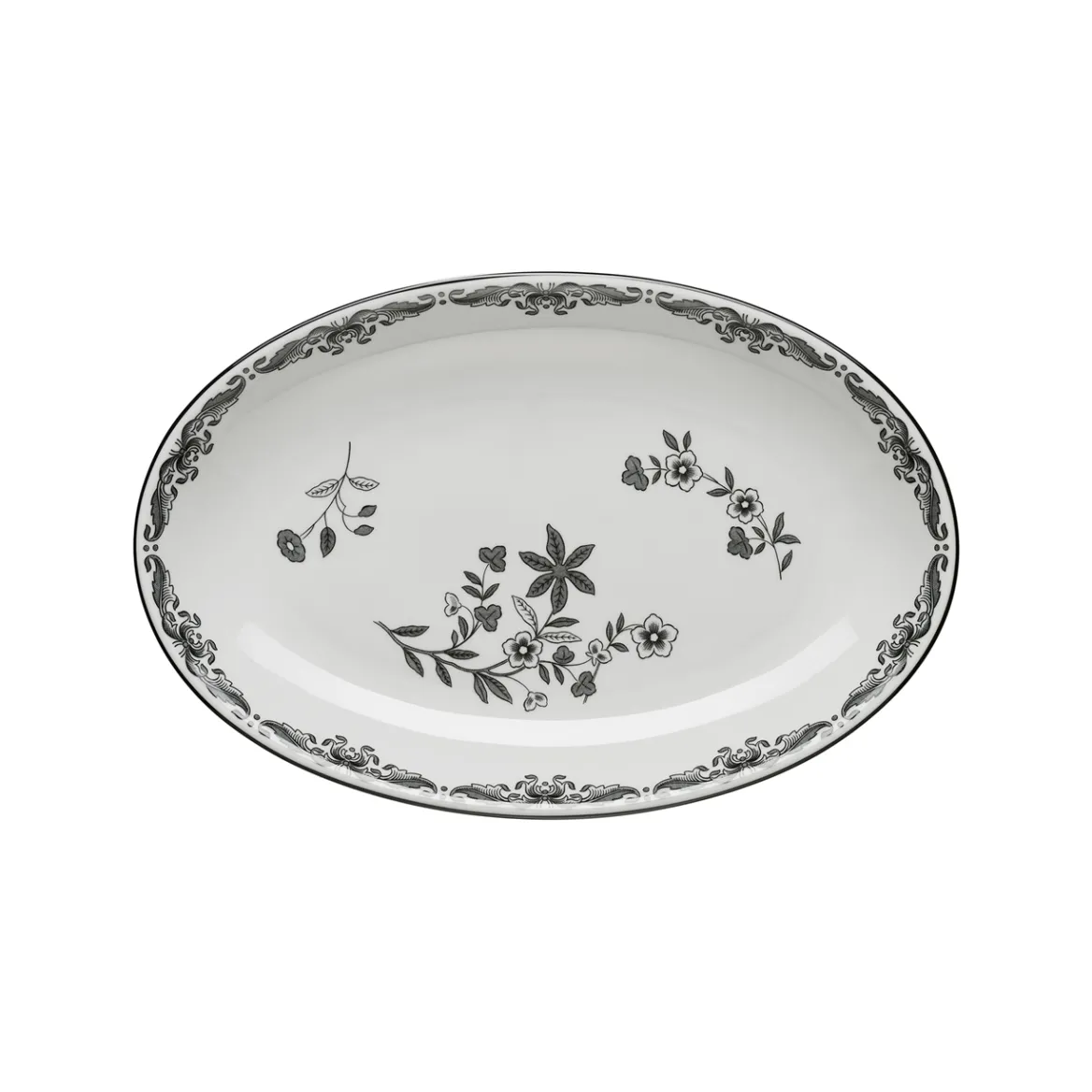 Ostindia Svart on Ostindian modernimpi tulkinta, ja tämä tarjoiluastia (33 x 22 cm) sopii moneen tarkoitukseen. Käytä sitä ruoan tarjoiluun. Musta kukkakuvio tuo aistillisuutta ja ylellisyyttä arkeen. Ostindia Svart on Rörstrandin toiseksi vanhin posliiniastiasarja, jonka suosio jatkuu. Sen osia on helppo yhdistellä.