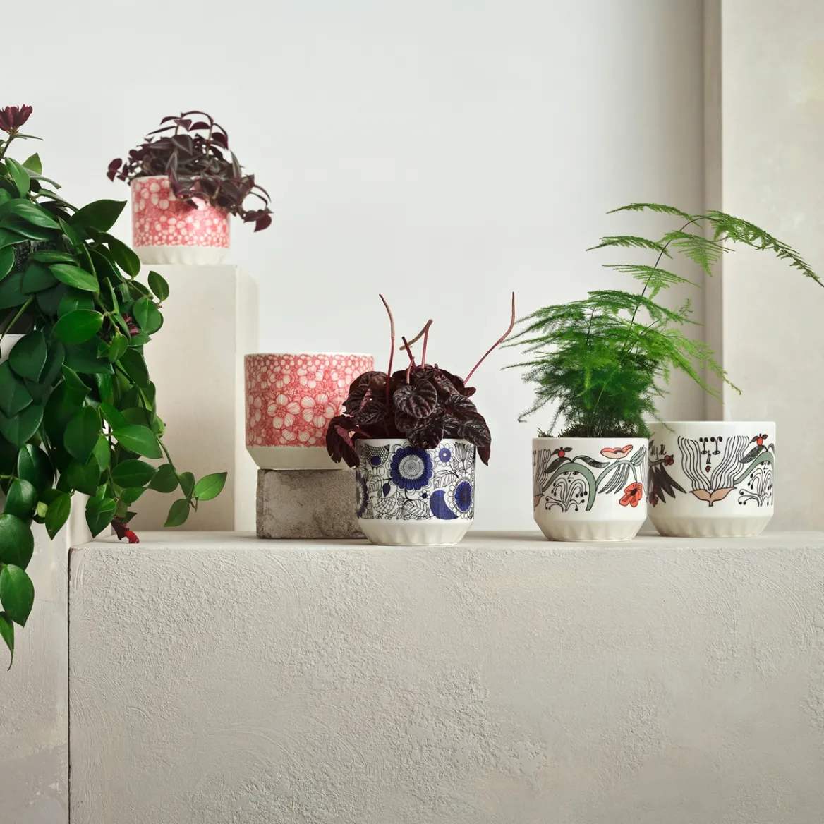 Arabian 150-juhlavuoden kunniaksi toimme Arabian rakastetut kuviot -astiasarjaan uuden, Armi Tevan suunnitteleman Puutarhurit-kuvion. Raikas kuvio ihastuttaa näyttävillä graafisilla yksityiskohdillaan ja vie ajatukset kesään.