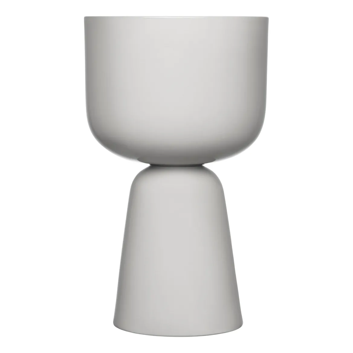 Muotoilija Matti Klenell sai idean Nappula-sarjaan erikoisenmuotoisista pöydänjaloista. Vaaleanharmaa 260x155mm Nappula-ruukun isompi versio korostaa kasveja kauniisti. Keraamisen ruukun selkeä muoto tuo uutta inspiraatiota kodin viherkasvien asetteluun. Näyttävä yksinään tai ryhmäksi koottuna. Täydellinen lahja kaikille viherpeukaloille.