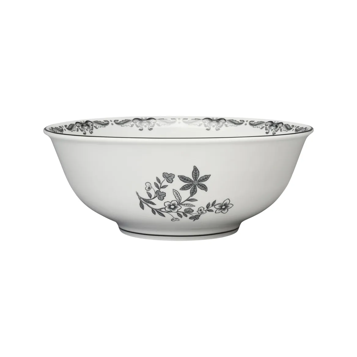 Ostindia Svart on Ostindian modernimpi tulkinta, ja tämä salaattikulho (2,4 l) sopii moneen tarkoitukseen. Suurikokoiseen kulhoon mahtuvat niin salaatit kuin lisukkeet. Musta kukkakuvio tuo aistillisuutta ja ylellisyyttä arkeen. Ostindia Svart on Rörstrandin toiseksi vanhin posliiniastiasarja, jonka suosio jatkuu. Sen osia on helppo yhdistellä.